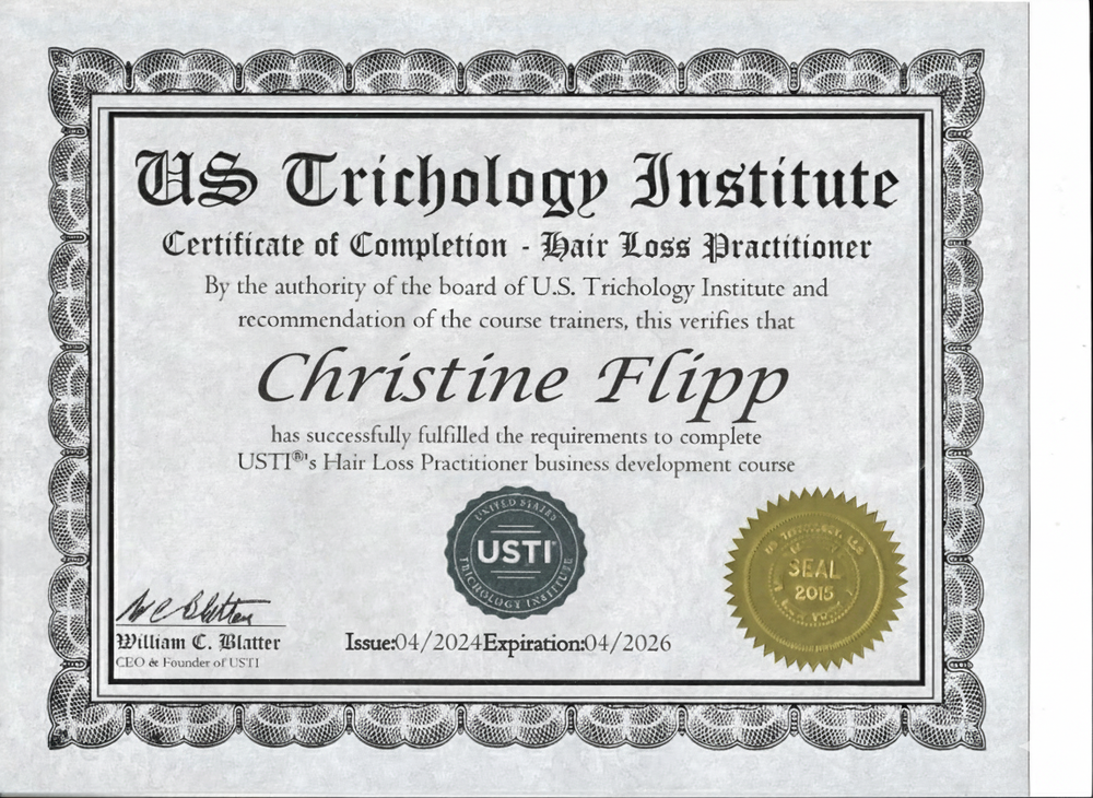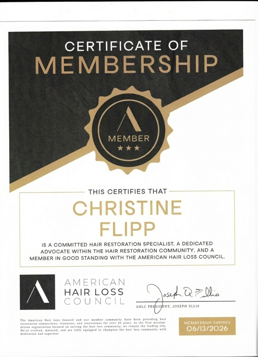 With over 22 years of experience and triple certification as a Master Hair Restoration Stylist, Hair Loss Consultant, and American Medical Certified Trichologist, our team is uniquely qualified to address your hair loss concerns. As proud members of esteemed organizations such as the USTI Trichology Institute and The American Hair Loss Council, we adhere to the highest standards of professionalism and excellence in hair restoration.